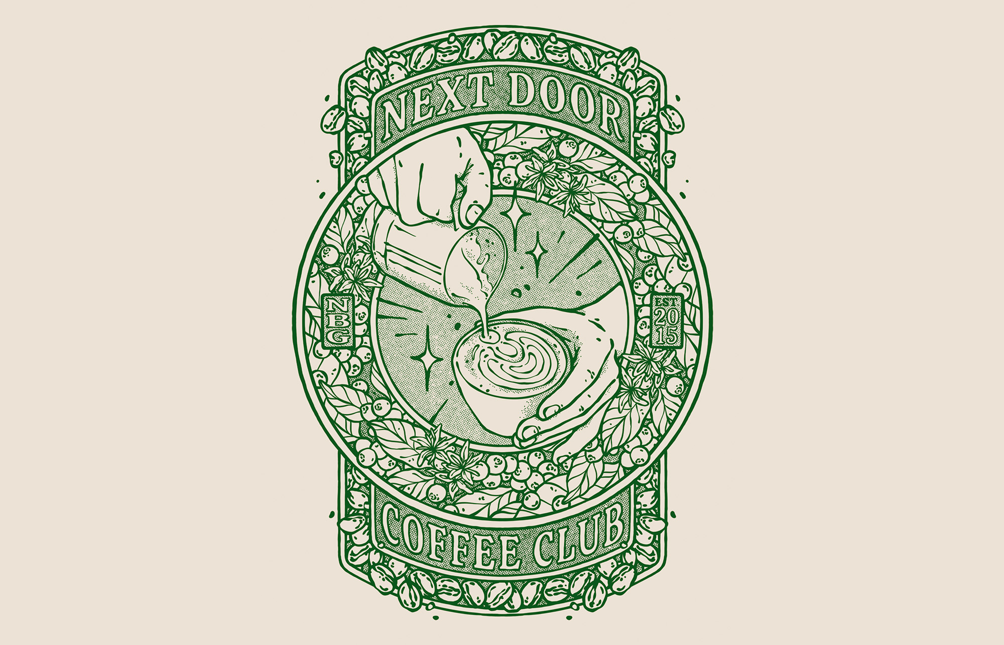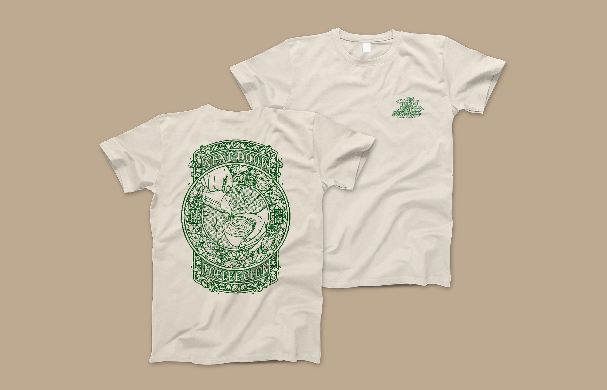 Zum 10-Jährigen des Nürnberger NextDoor Coffee Club haben wir eine einfarbige Illustration rund um das Thema Kaffee gestaltet. Diese schmückt nun die Jubiläums-T-Shirts des Cafés.